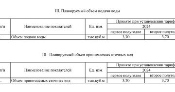 ПЛАНИРУЕМЫЕ ОБЪЕМЫ ПОДАЧИ ВОДЫ, СТОЧНЫХ ВОД:
