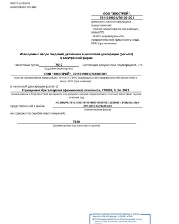 Государственный регистрационный номер, дата его присвоения и наименование органа зарегистрировавшего ООО "ЭкоСтрой", в соответствии со свидетельством о государственной регистрации в качестве юридического лица:
