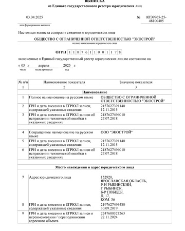 Почтовый, юридический адрес: 152920, РФ, Ярославская область, г.Рыбинск, Будьвар Победы, д.17, комната 36