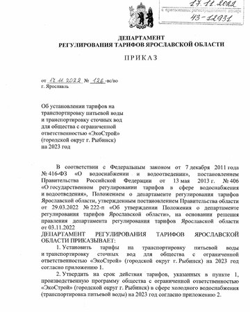 ИНФОРМАЦИЯ О ТАРИФАХ НА РЕГУЛИРУЕМЫЕ ТОВАРЫ, ОБ УТВЕРЖДЕНИИ ТАРИФОВ НА ТРАНСПОРТИРОВКУ ВОДЫ И СТОКОВ: