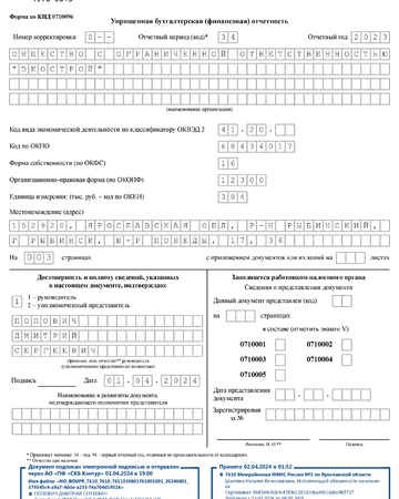 Упрощенная бухгалтерская (финансовая) отчетность за 2024 год
